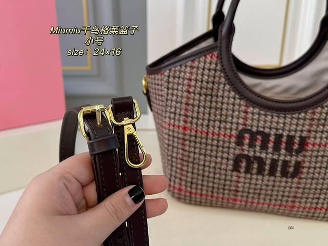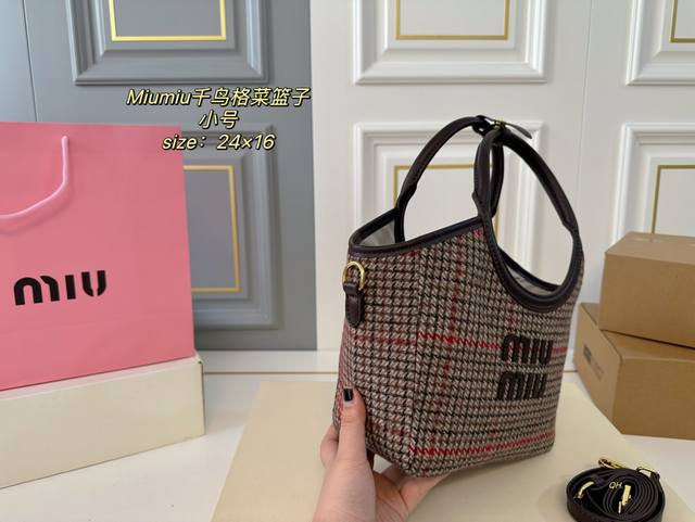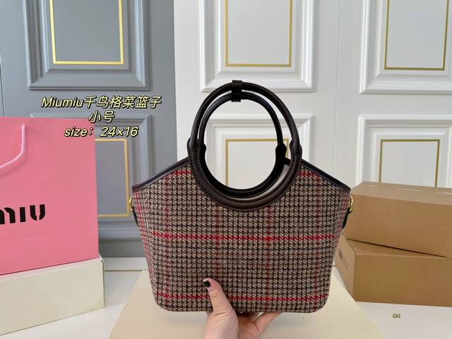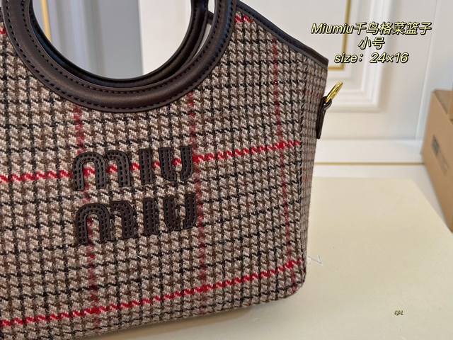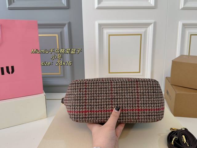 小号 折叠盒 Size:24×16小号 Miumiu缪缪新款千鸟格菜篮子托特包 超级洋气,时髦精的托特 配长肩带 可手提可斜挎 轻便简约,慵懒随性 超大空间,又