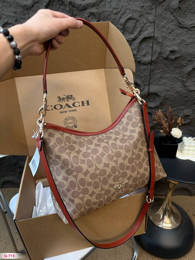 配礼盒 蔻驰新款laurel流浪包真的绝美!随性慵懒轻松拿捏,一长一短两条肩带,单肩斜挎手提腋下背都可以随意百搭,内部有带拉链的侧兜可以用来放重要物品!尺寸30