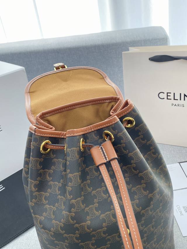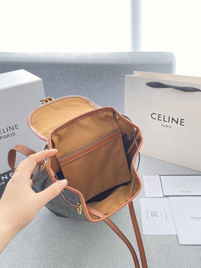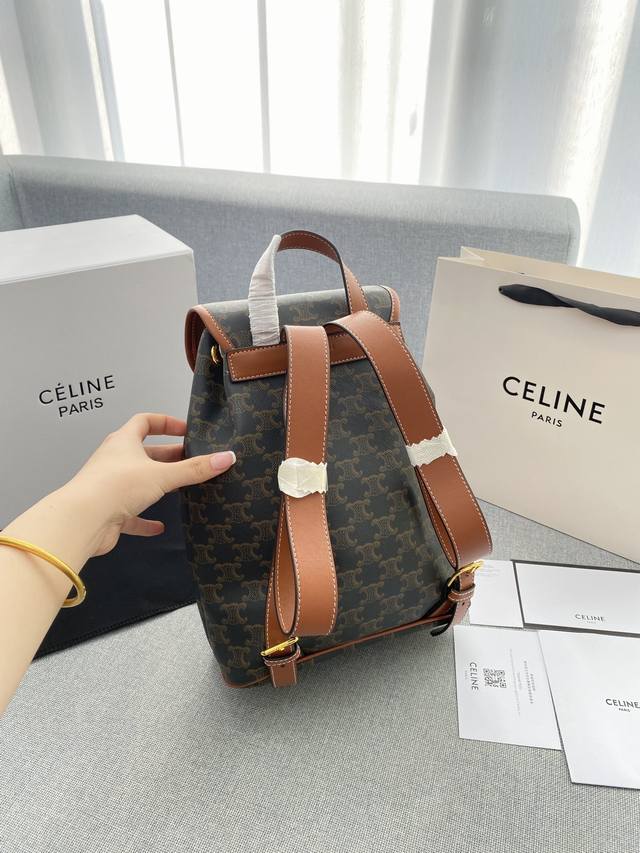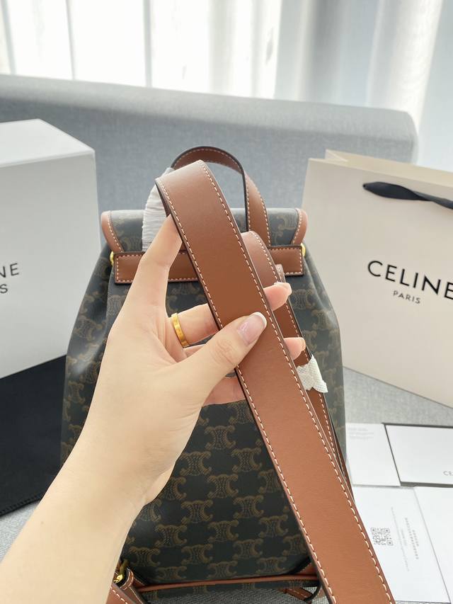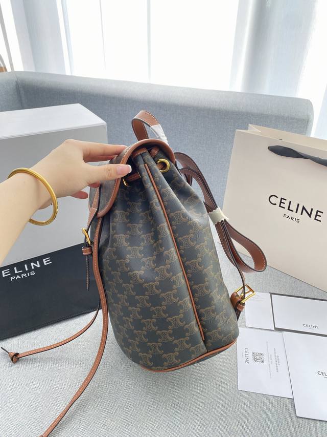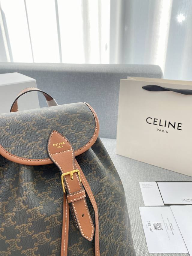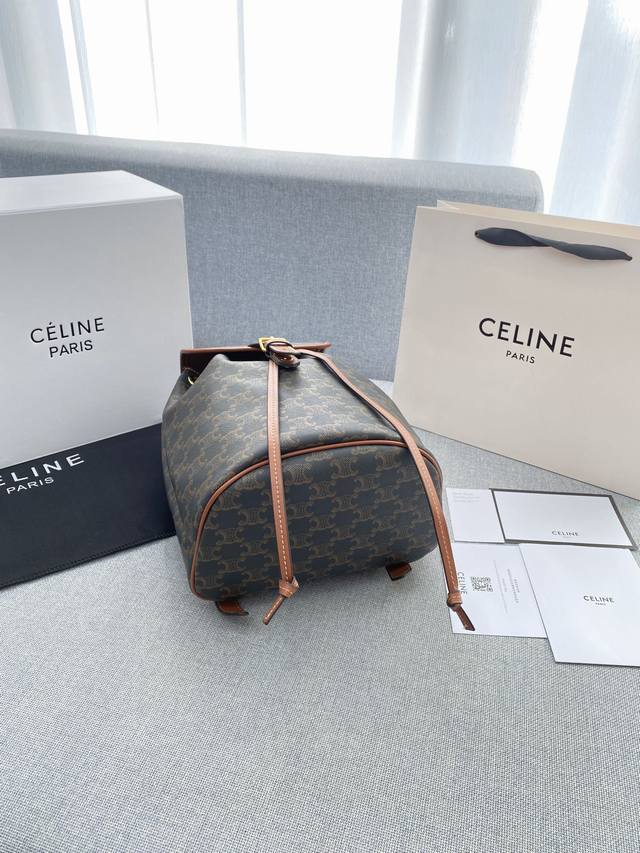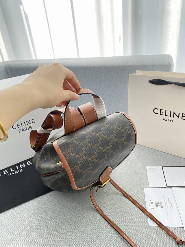 牛皮版本 Size:18 22Cm Celine 老花双肩包新品 延续凯旋门 复古斜挎 , 耐看经典印花一点都不老套