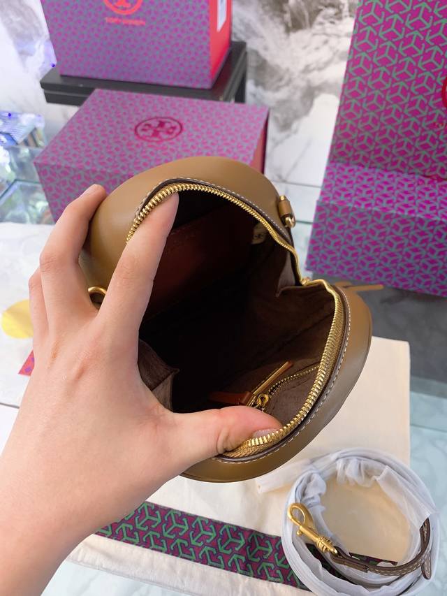 小牛皮 Tory Burch 托里伯奇 圆饼包 原单开模定制 五金内衬镂空logo 内带产地标进口面料手感质感超级好更耐磨!亮泽五金不褪色 单肩斜挎包时尚百搭