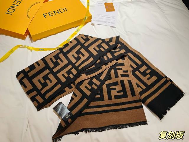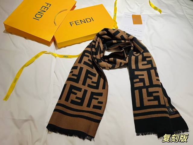 专柜原版打版定制芬迪蚕丝羊毛围巾