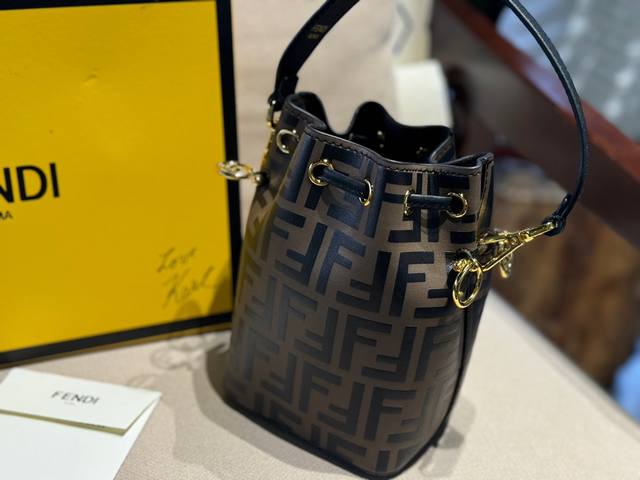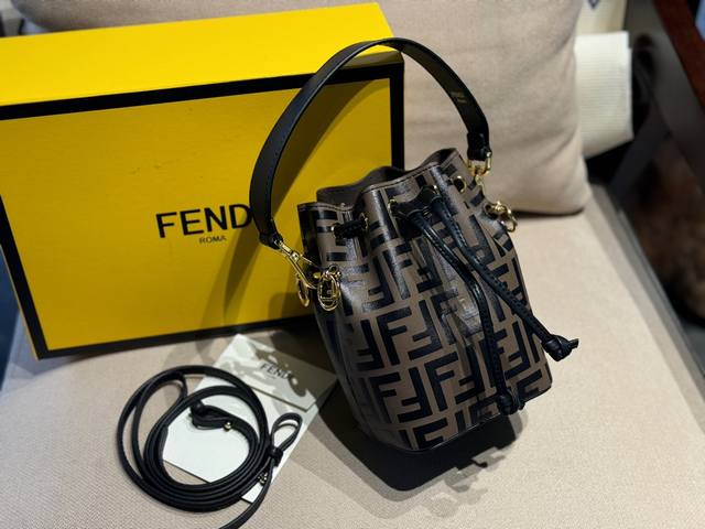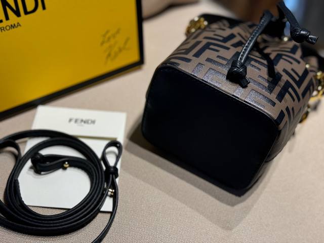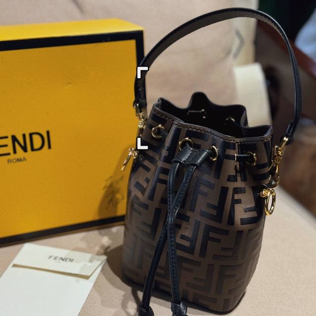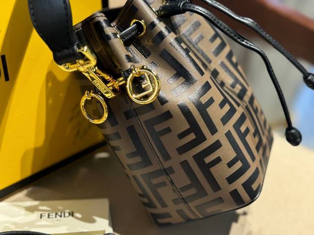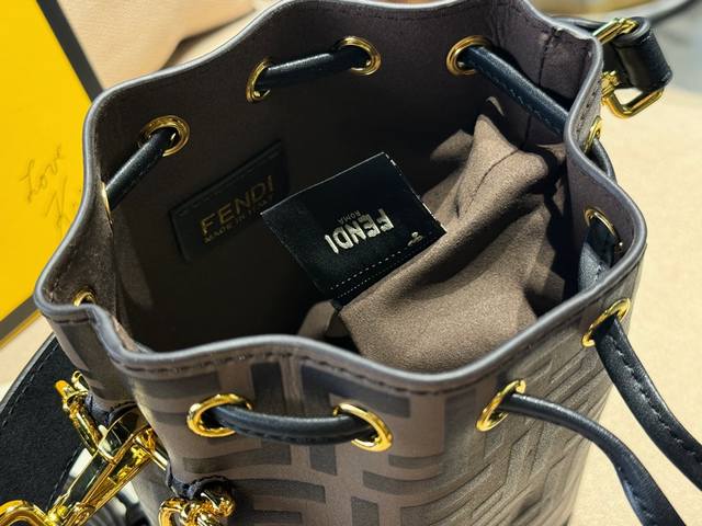 配盒 牛皮 Size:12.5*18Cm 热门必备单品 Fendi 水桶包 高品质 原版细节五金 配置长肩带! 完全不挑穿搭的fendi老花mini水桶包! 容