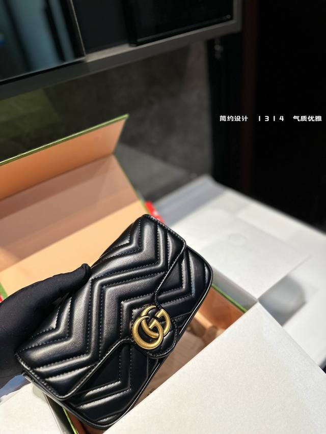 礼盒包装 Gucci Marmont 新款 一定要入手的小马蒙包 Marmont最最经典的双g 升级版牛皮 皮质!五金!对纹!完美!Size:22 12Cm