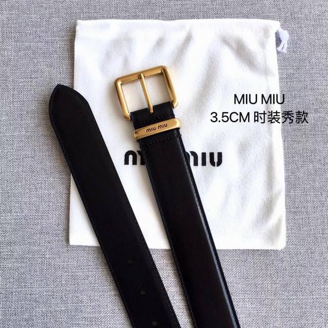 / 缪缪这款皮革腰带设计简约优雅,金属搭扣伴有miumiu字样针扣,手感柔软,细节实物拍摄 女神款!宽度3.5 Cm