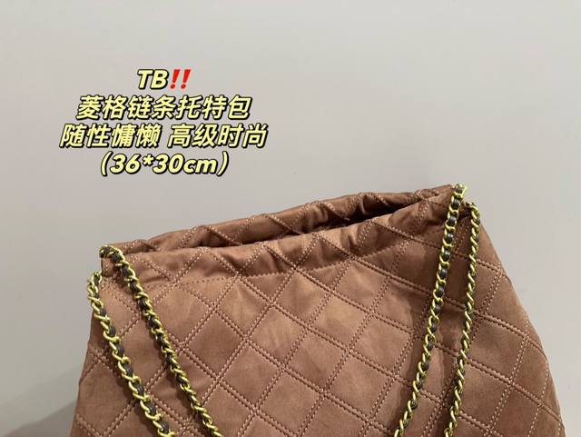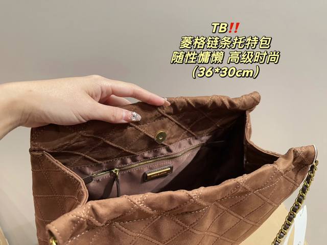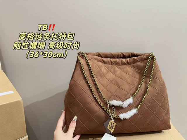 / 全套包装尺寸36.30 托里伯奇 Tb 菱格链条托特包 质感很高级 容量超级大也很耐用 日常出街背它回头率百分百 就是这种随性慵懒感