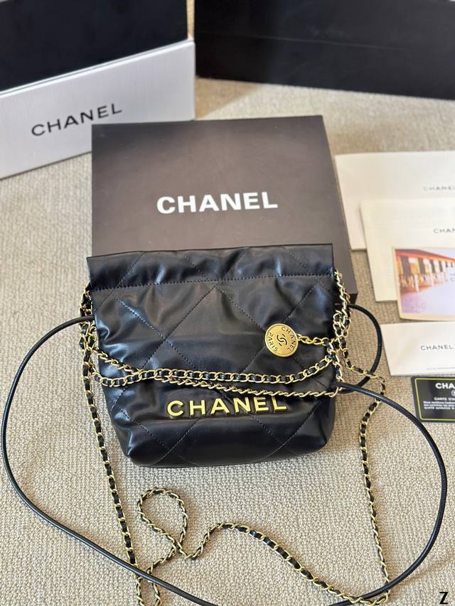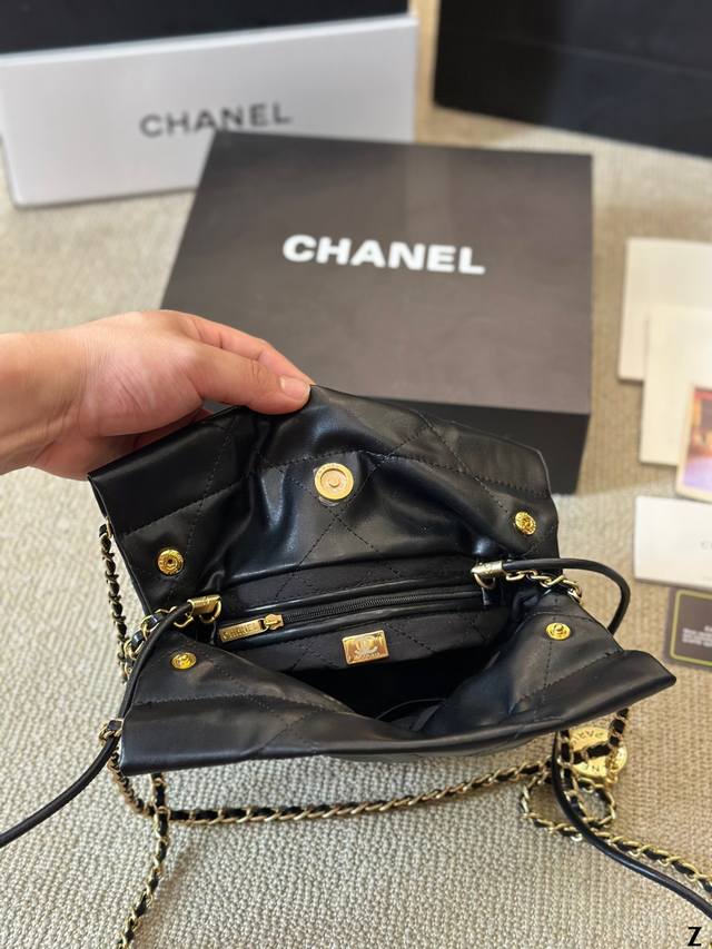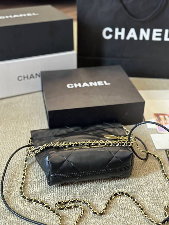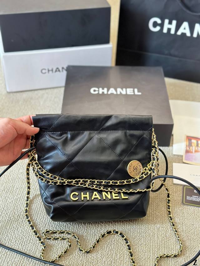 小羊皮 Chanel 24S Mini 22Bag 本季24S大爆款最時髦好看,可肩背,斜背,側背,手提,非常難買黑色金字款,耐看也最保值 这包太好看了 黑色款