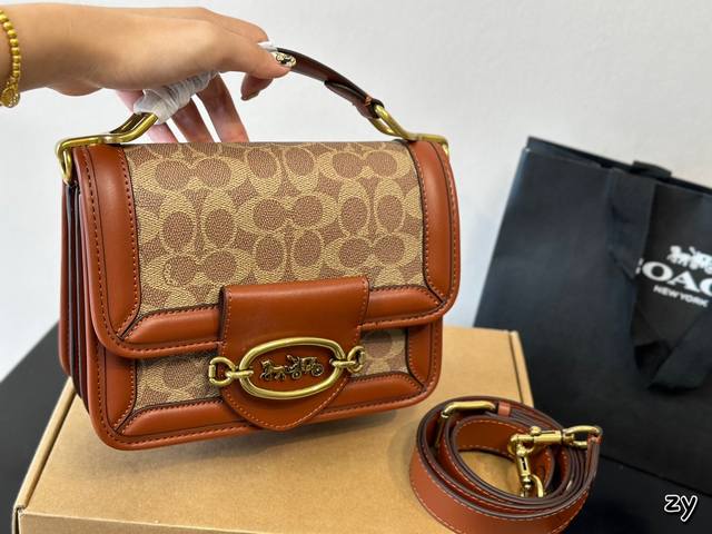 / 折叠盒 二月新款 Hero Shoulder Bag系列手提包 牛皮老花斜挎包女包 Size:22*14