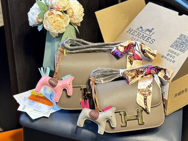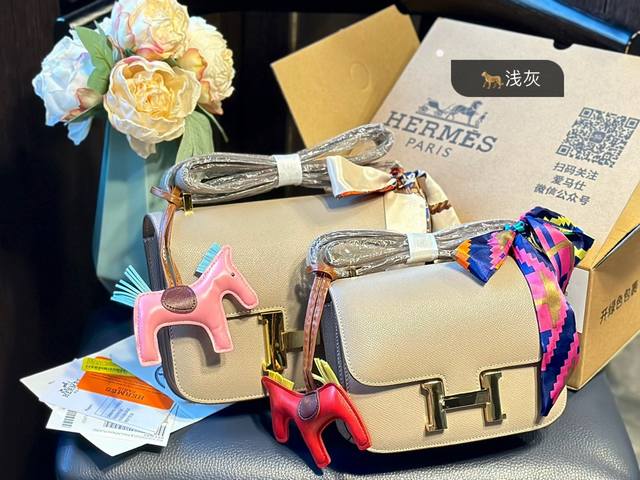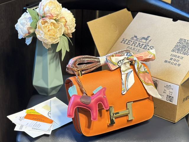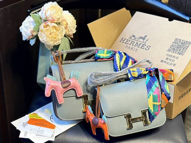 爱马仕 金h扣斜挎豆腐包,康斯坦空姐包,顶级做工和皮质,原版五金 整只包包的细节精致完美,包型的弧度圆润刚刚好。出去吃饭逛街约会随便一拿就很精致时髦!全套包装 尺寸18 15Cm 24 18Cm