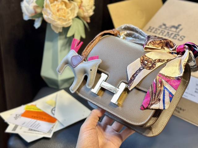 爱马仕 金h扣斜挎豆腐包,康斯坦空姐包,顶级做工和皮质,原版五金 整只包包的细节精致完美,包型的弧度圆润刚刚好。出去吃饭逛街约会随便一拿就很精致时髦!全套包装 尺寸18 15Cm 24 18Cm