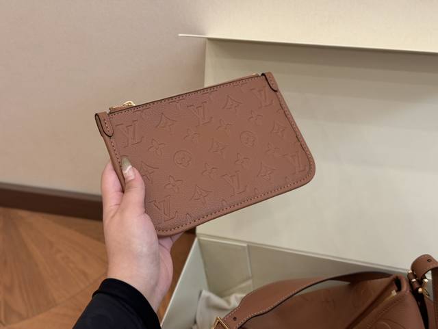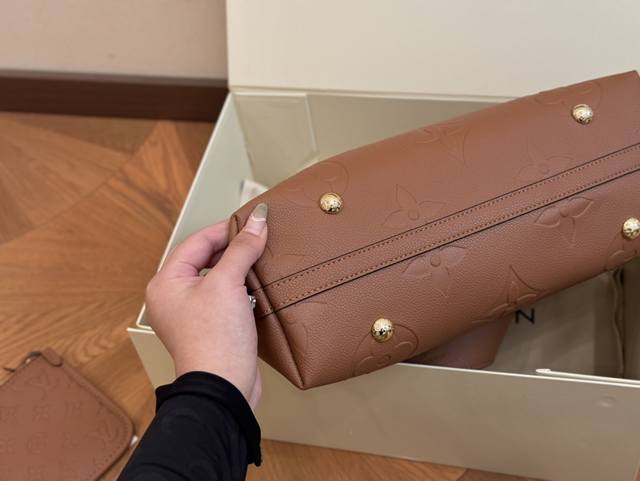 Lv新款Onthego沙丘色 一眼心动大字母压印于柔软粒面牛皮 长短手柄便于手提或肩背 小号精致百搭又能装 而且包包自重轻便于出门...