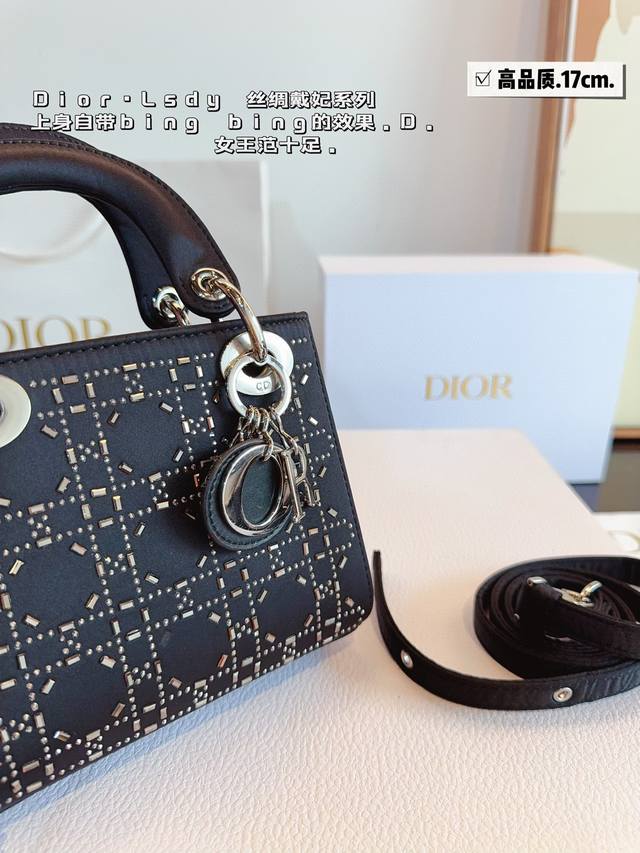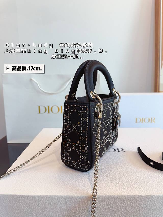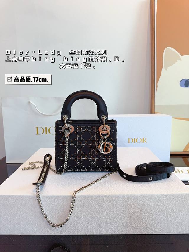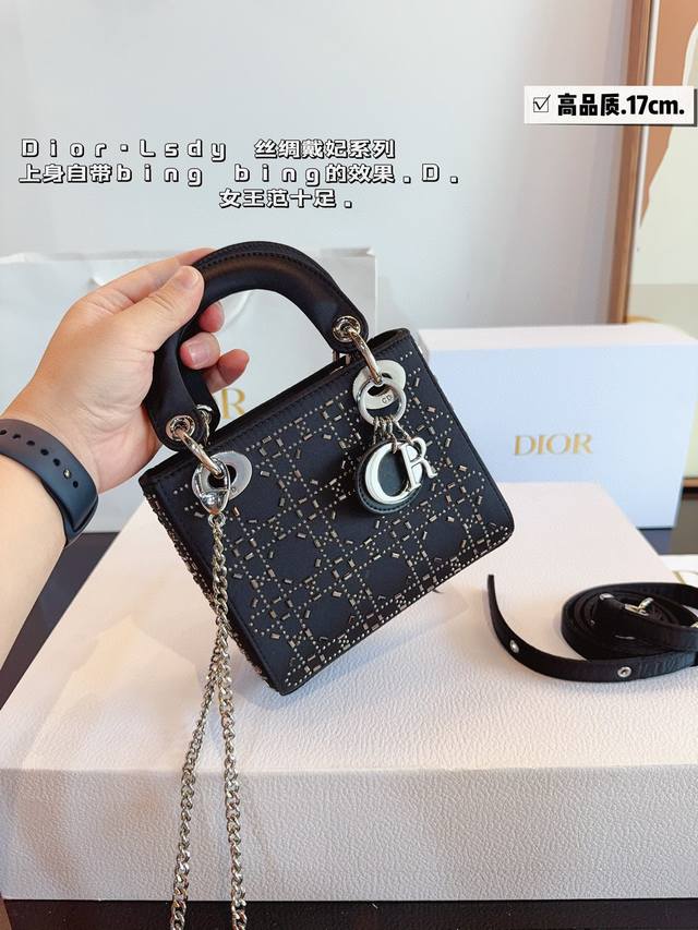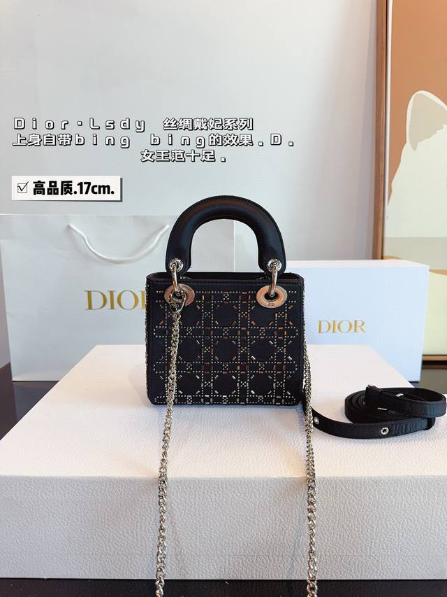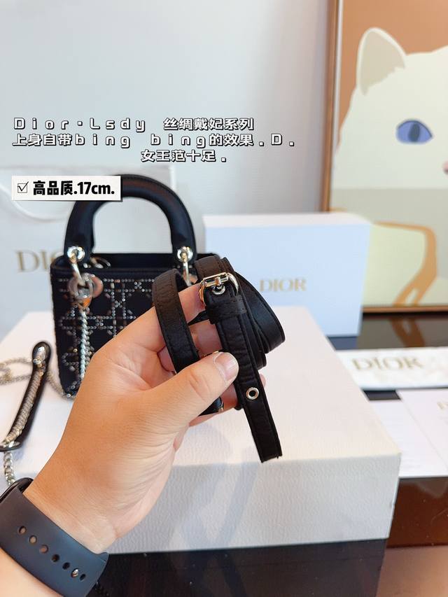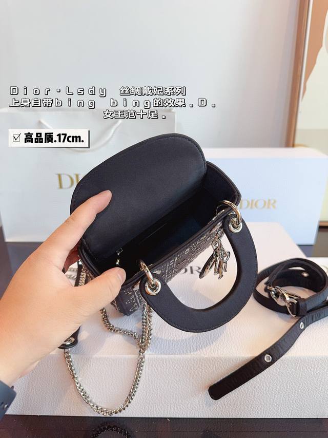 配礼盒 丝绸 腾格纹 迪奥dior 戴妃包 可可爱爱 小巧玲珑 优雅精致 仙女必备款尺寸:17*7*15Cm