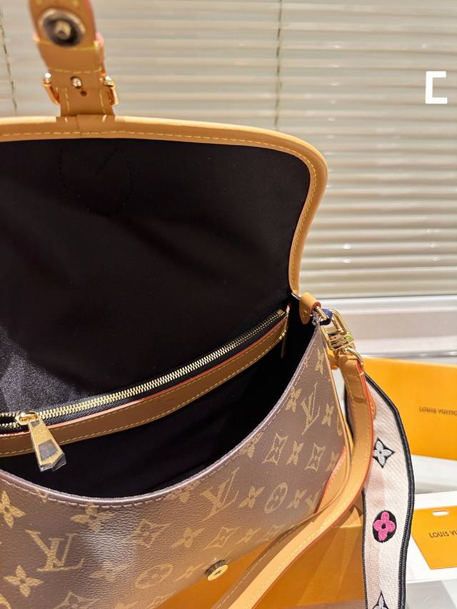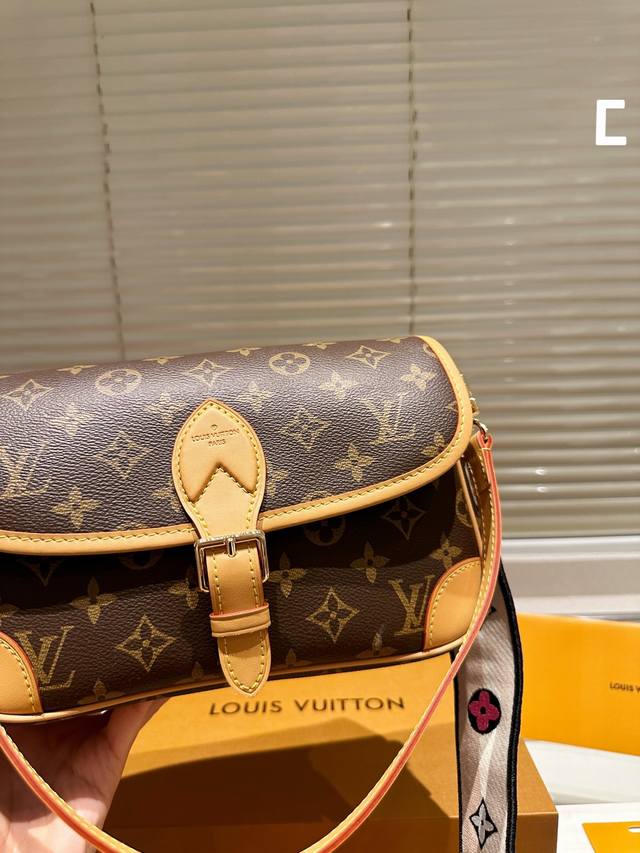 Lv 法棍包 调节扣肩带 邮差包 翻盖手袋,网红爆款 这款邮差包真是太有味道了 浓浓的复古风情 的精髓体现的淋漓尽致 挺括明快的线条与丰富的经典设计细节彰显独特魅力:时尚而实用的都市手袋。尺寸:24Cm