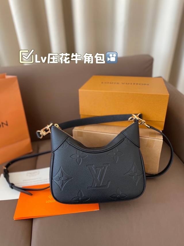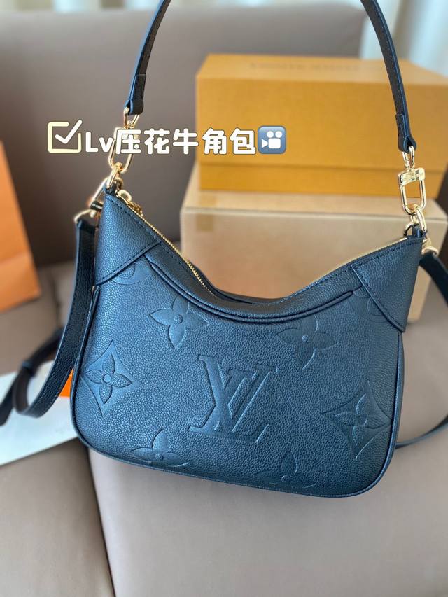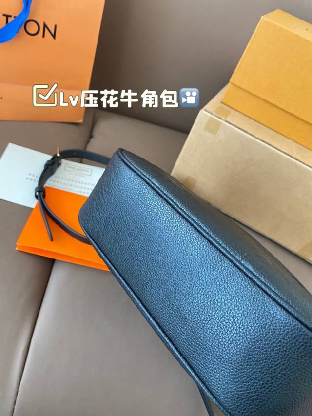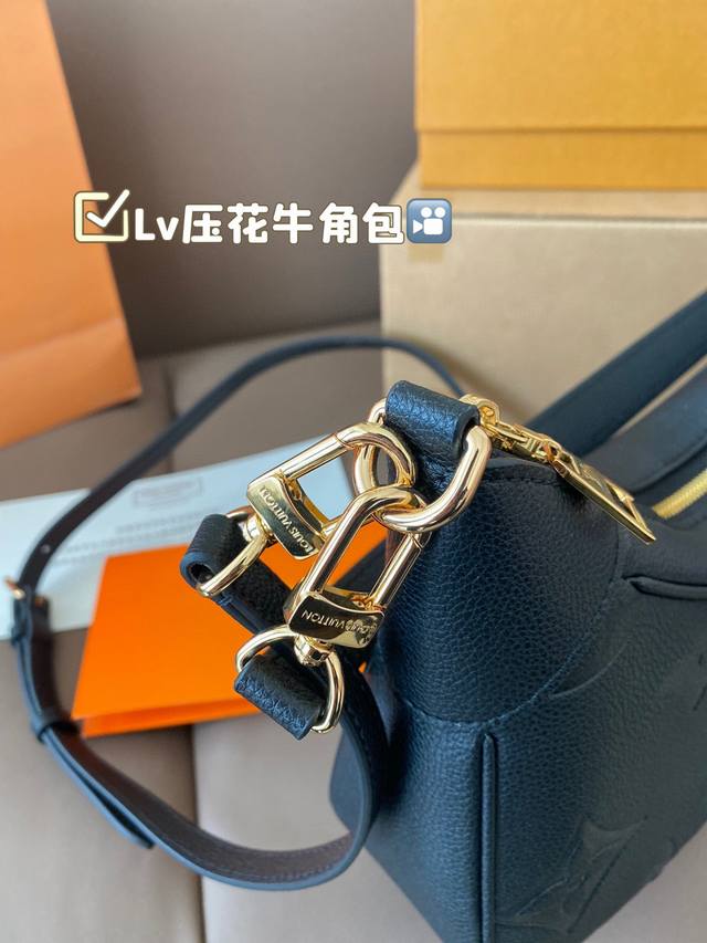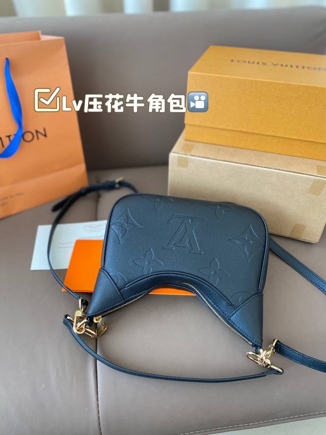 配折叠盒子 飞机盒 Lv压花牛角包 单肩背 斜跨也好 今年可流行腋下包了很轻巧 容量巨大款式百搭可以做更短的腋下包背 也很时髦 小个子 背起来毫无压力 赶紧下手
