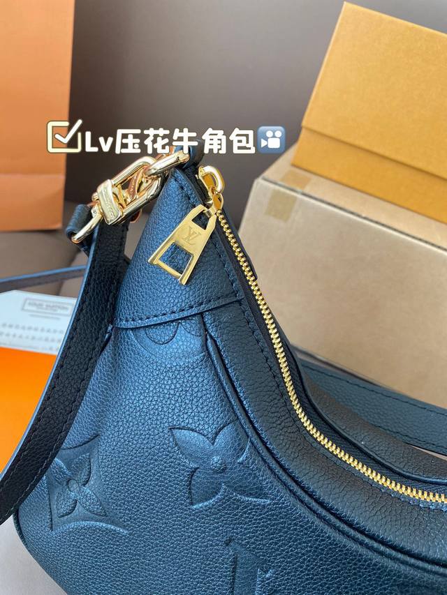 / 配折叠盒子 飞机盒 Lv压花牛角包 单肩背 斜跨也好 今年可流行腋下包了很轻巧 容量巨大款式百搭可以做更短的腋下包背 也很时髦 小个子 背起来毫无压力 赶紧下手