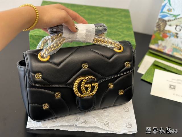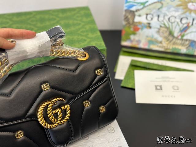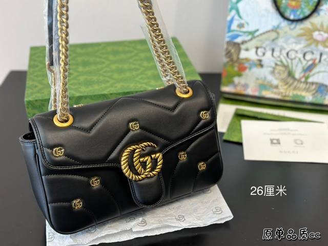 Gucci Marmont 经典&百搭 Gucci马蒙链条包经典尺寸: 22Cm 26Cm 经典金扣双Glogo复古做旧五金波浪纹衔缝牛皮采用的是小牛皮不仅有光