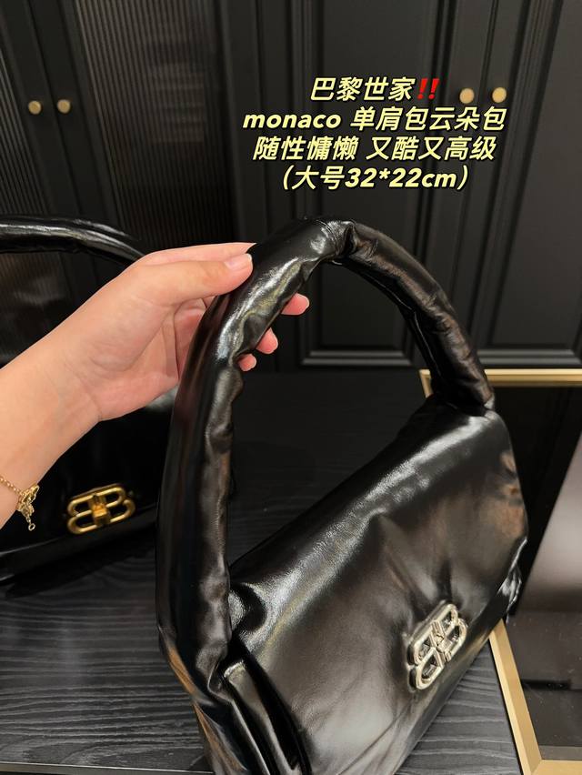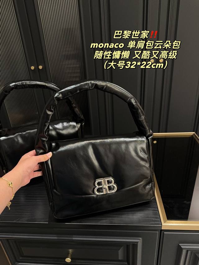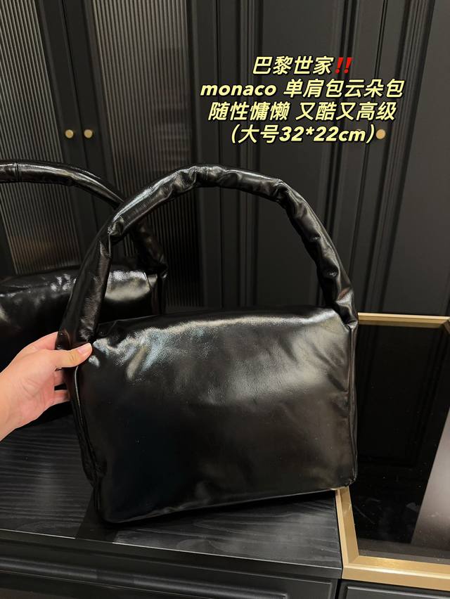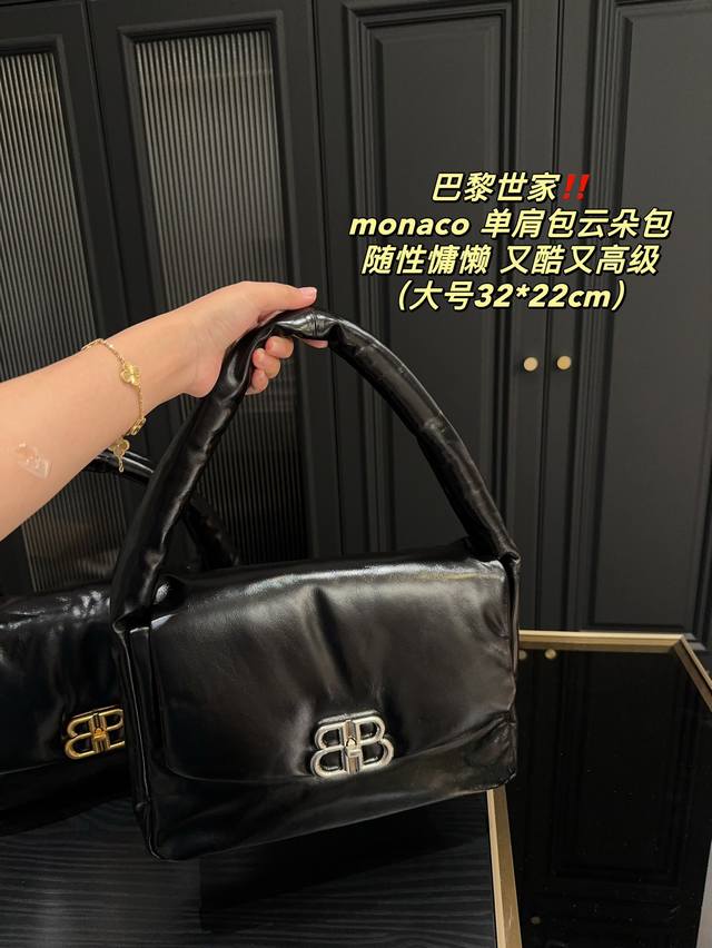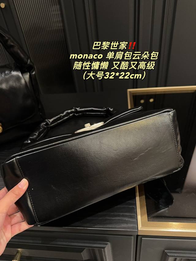 拎,每种形态都展现出了包包不那么巴黎世家式的优雅和随性。大片中两位模特背的都是它的最大号,这个尺寸也是当初秋冬秀场的明星口用来长途旅行会很合适,如果日常的话我不太建议小个子女生拿。大号尺寸还有绗缝款可供选择,银色链条运用了做旧效果,但monaco 这只包的那份潇洒劲是一样的。包包还有