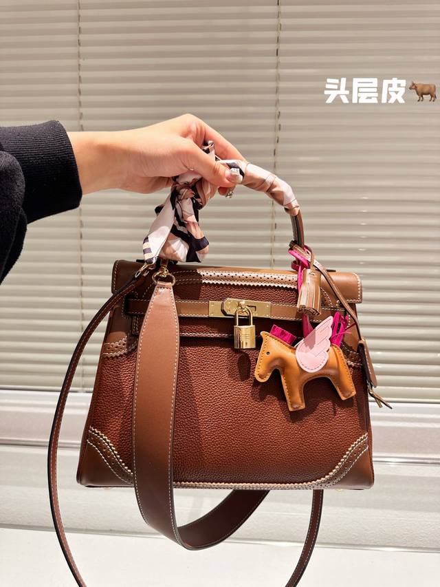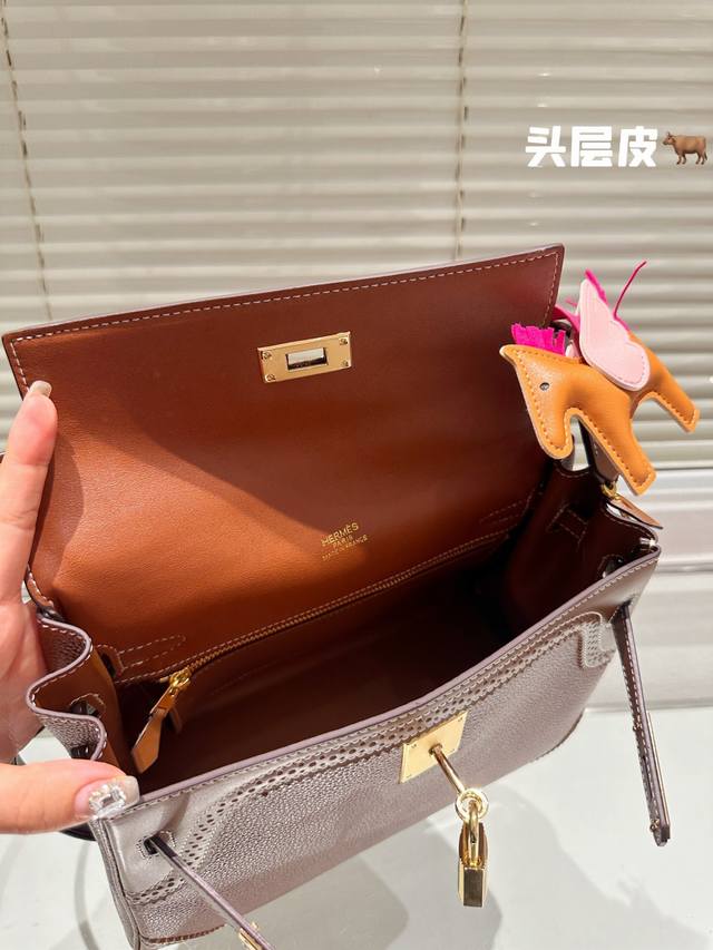 凯莉蕾丝马鞍皮 进口头层荔枝纹牛皮 手工线水油边 人工手打穿孔 顶级货 不是地产货 Hermès 爱马仕 凯莉包 高端质量...