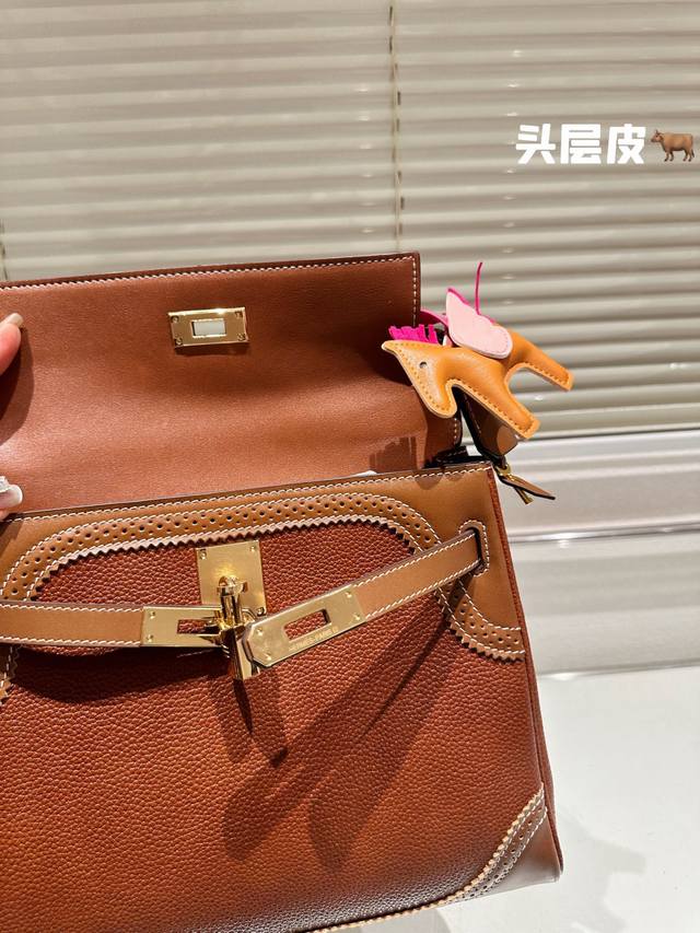 / 进口头层荔枝纹牛皮 手工线水油边 人工手打穿孔 顶级货 不是地产货 Hermès 爱马仕 凯莉包 高端质量 专柜最新款进口荔枝纹 明星同款 原版质量 ,Herm