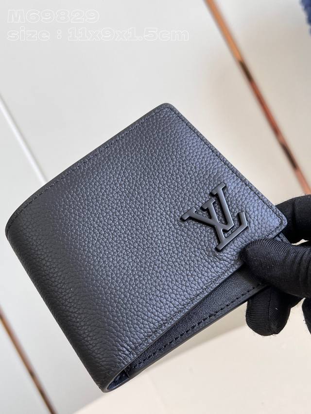 顶级原单 独家实拍 M69829黑 Lv Aerogram Multiple 钱夹为经典设计注入崭新意味。考究工艺令牛皮革呈现丰盈粒面质感,金属 Lv 字母标注品牌身份,可轻松搭配 Lv Aerogram 系列手袋。11.5 X 9 X 1.5厘米 长度 X 高 X 宽 Ns