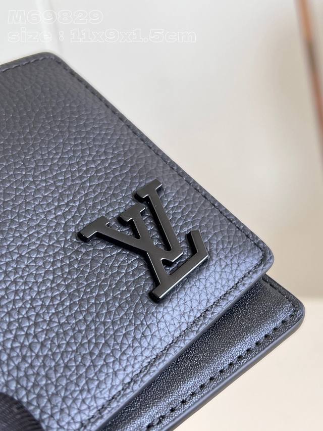 / 顶级原单 独家实拍 M69829黑 Lv Aerogram Multiple 钱夹为经典设计注入崭新意味。考究工艺令牛皮革呈现丰盈粒面质感,金属 Lv 字母标注