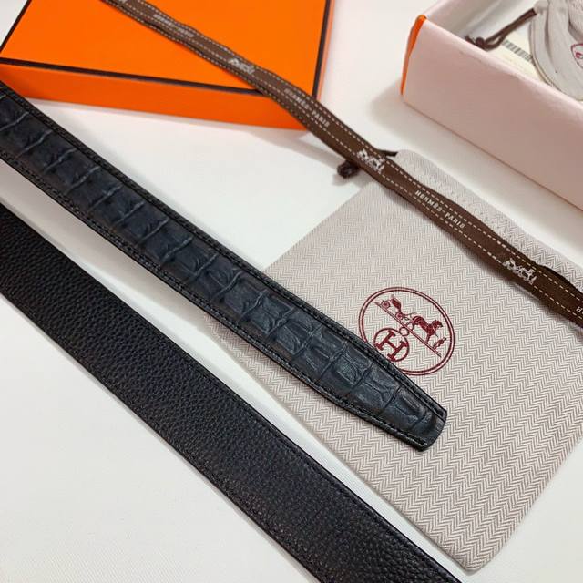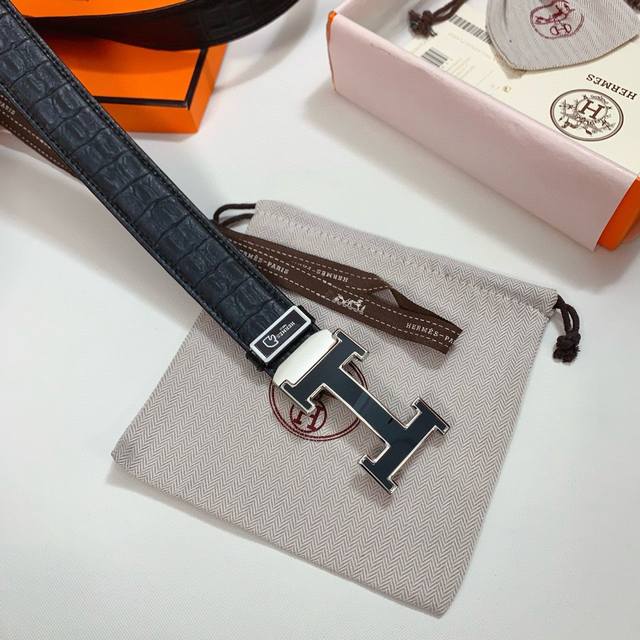 / 爱马仕自动款系列配正版包装,高端品质原单鳄鱼双骨纹牛皮,包边缝制,皮版正版开模,扣头镀钯精品纯钢自动扣 宽度3.4Cm 高清实拍大图 ,保质保量