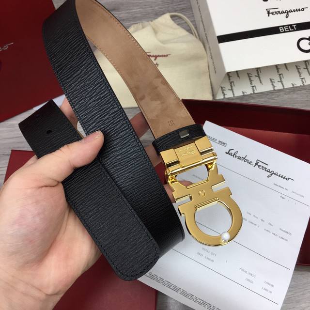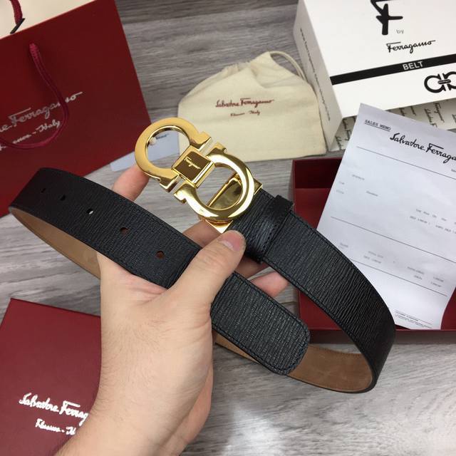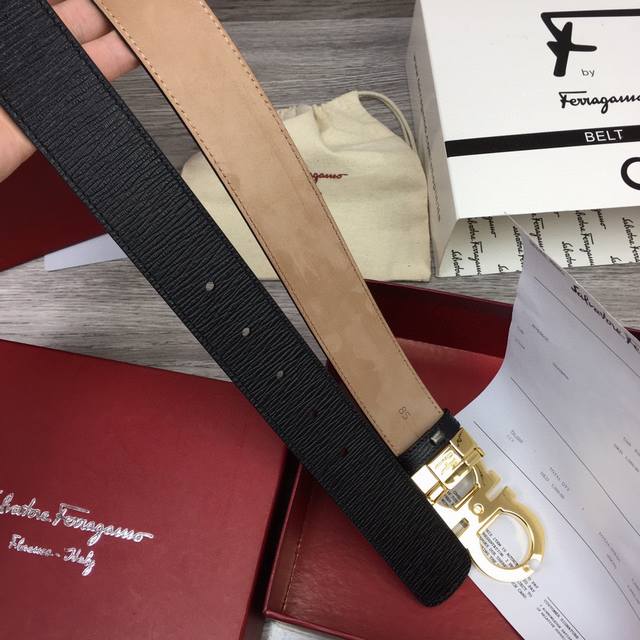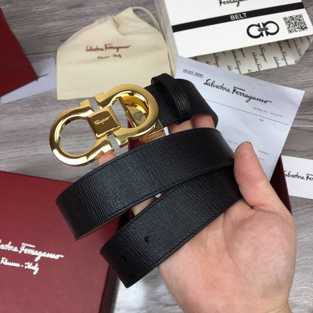 配正版包装菲拉格慕官网同步新款,原单镀钯精品扣,定制牛皮,双面带身皮纹质感柔软,请看图片认细节,品质保真,宽度3.4Cm...