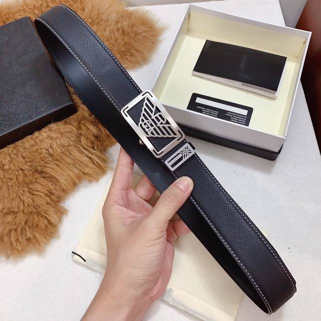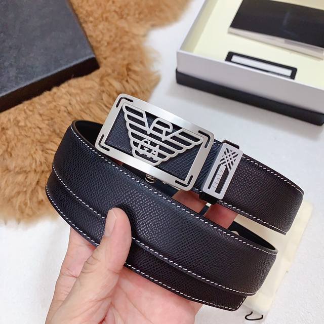 / 配正版包装阿玛尼官网同步正版,原单精品,镀钯精品纯钢自动扣,真空电镀不掉色,进口牛皮,质感柔软,版型时尚高档 皮带宽度3.4Cm 高清实拍大图 保质保量