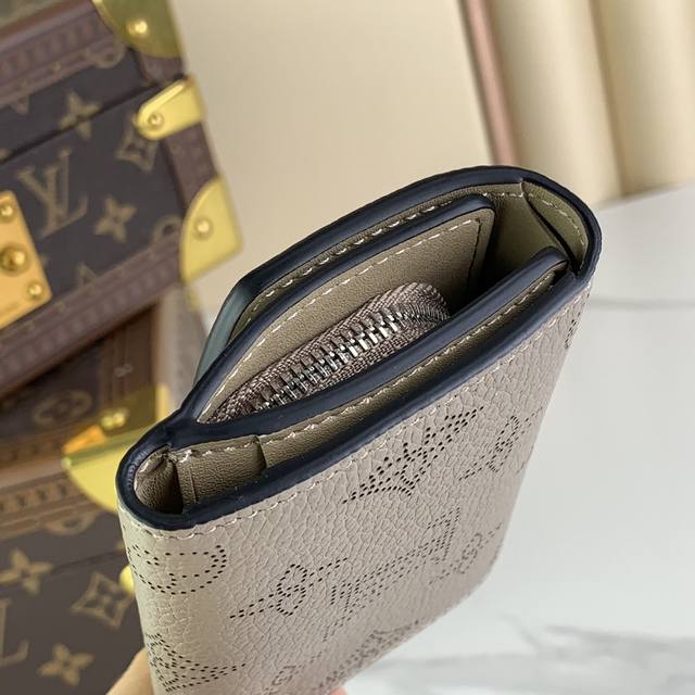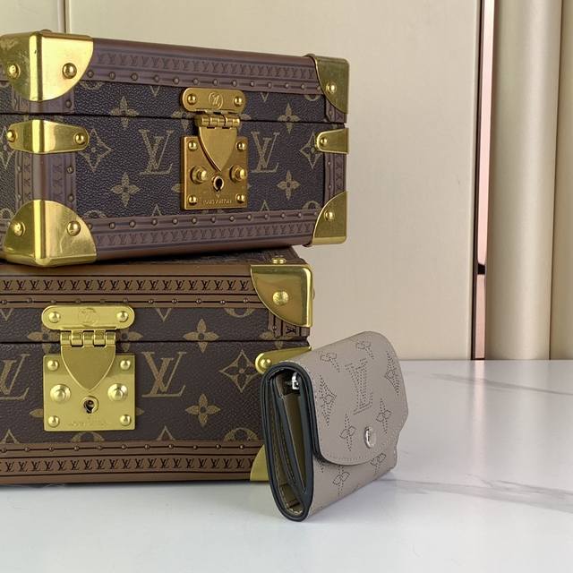 出厂价 Iris Xs 钱夹 M82795灰色 冲孔 取材细腻轻柔的镂花小牛皮, Monogram 穿孔微微浮现,圆润翻盖下暗藏充裕空间,设有信用卡位、风琴零钱