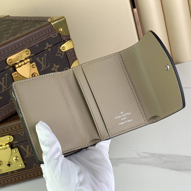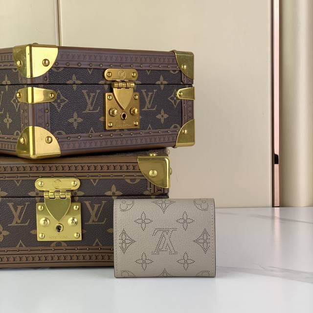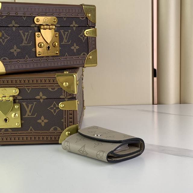 / 出厂价 Iris Xs 钱夹 M82795灰色 冲孔 取材细腻轻柔的镂花小牛皮, Monogram 穿孔微微浮现,圆润翻盖下暗藏充裕空间,设有信用卡位、风琴零钱