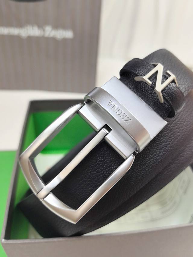 杰尼亚新款更新,Binario 针扣,深钌灰色饰面,可完全调节双面皮带,正面为黑色马德拉斯格纹雕纹小牛皮,反面为黑色小牛皮,意大利制造3.5Cm宽度