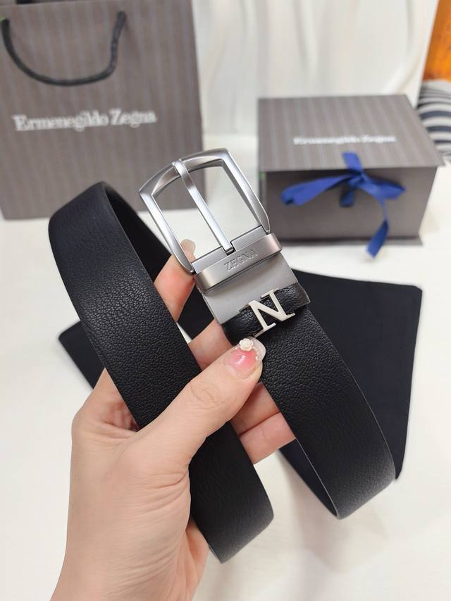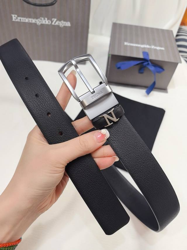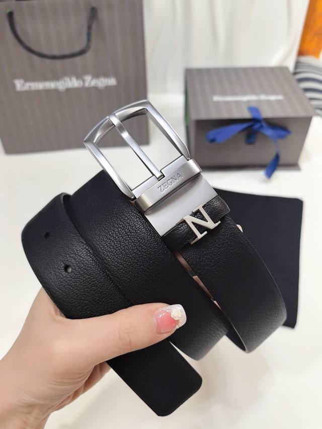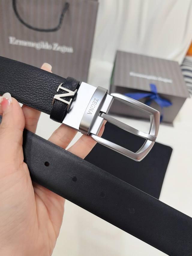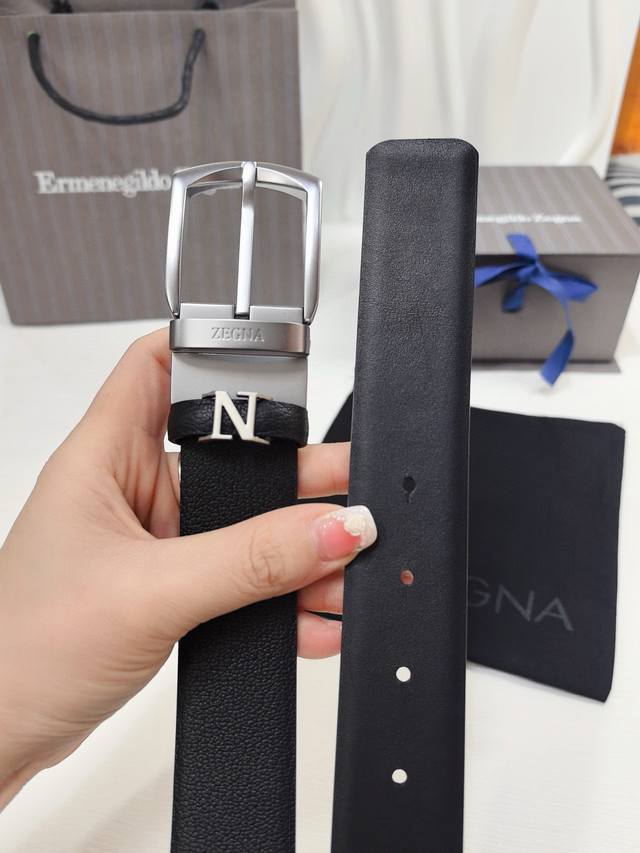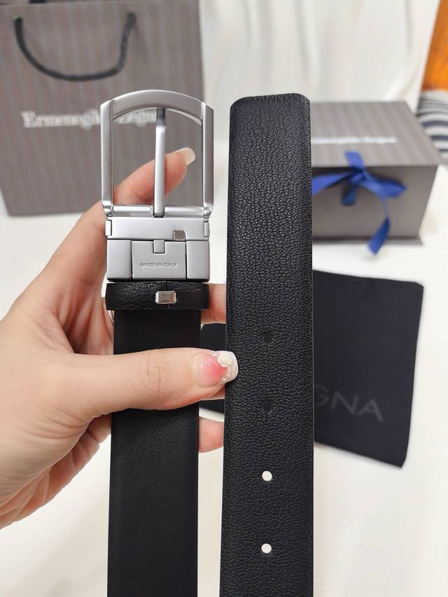 / 杰尼亚新款更新,Binario 针扣,深钌灰色饰面,可完全调节双面皮带,正面为黑色马德拉斯格纹雕纹小牛皮,反面为黑色小牛皮,意大利制造3.5Cm宽度