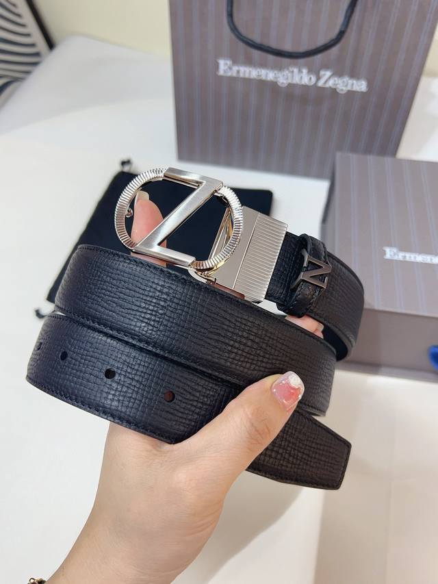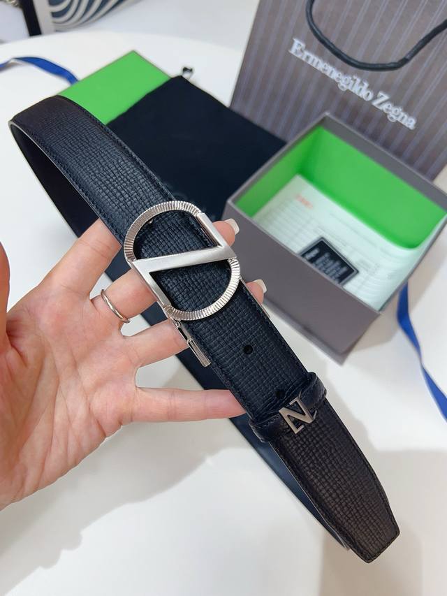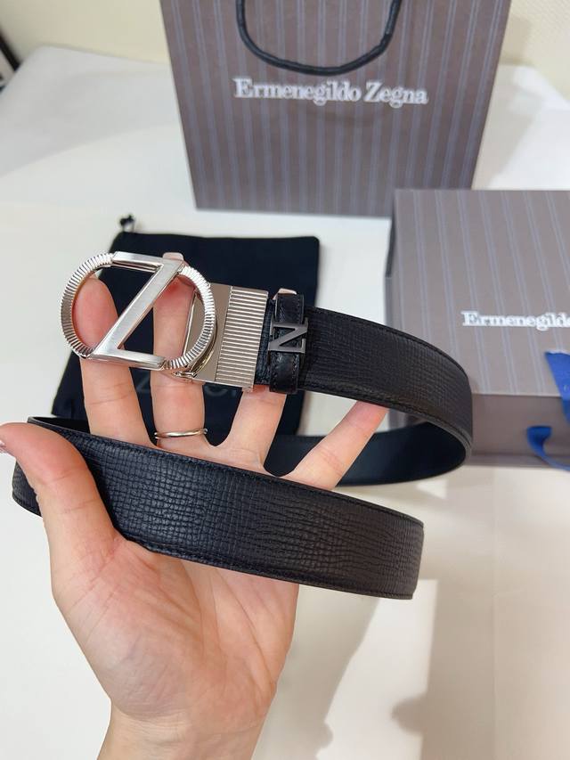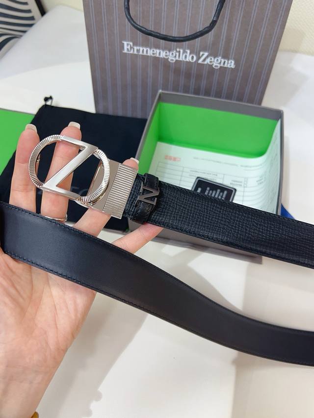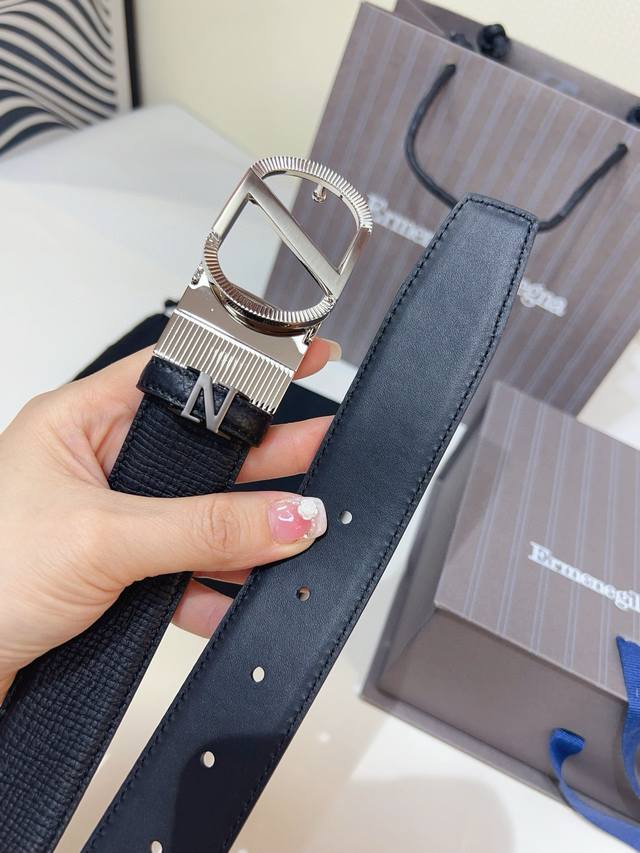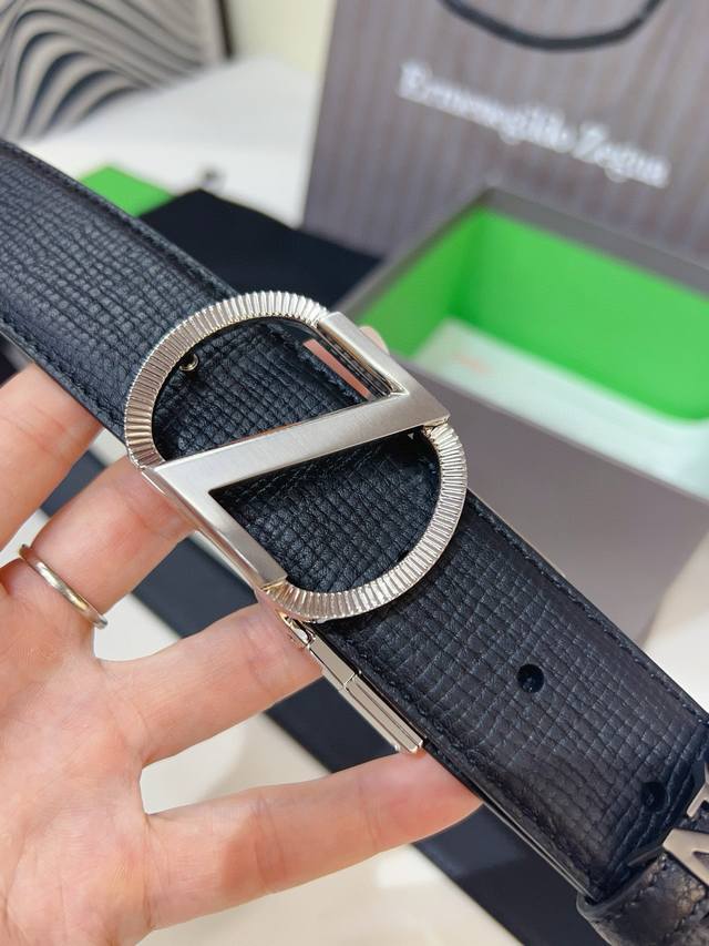 杰尼亚官网对版新款更新,搭扣深钌灰色饰面,可完全调节双面皮带