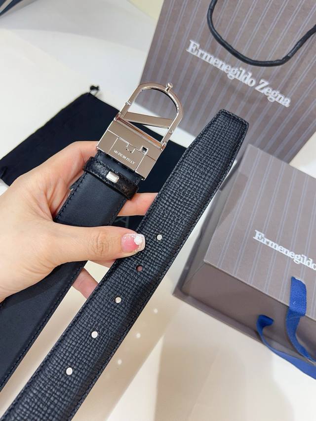 / 杰尼亚官网对版新款更新,搭扣深钌灰色饰面,可完全调节双面皮带 正面为黑色马德拉斯格纹雕纹小牛皮,反面为黑色小牛皮杰尼亚标识意大利制造3.5Cm宽度