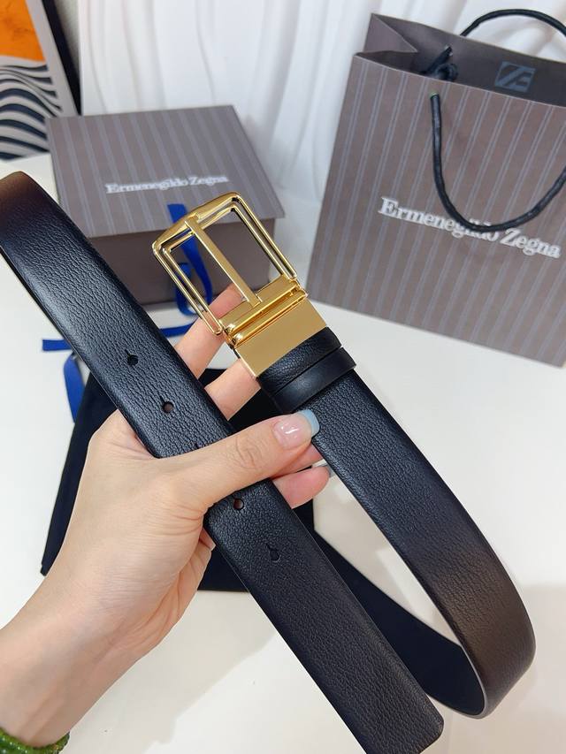 杰尼亚顶级原单精品,两种纹理可供选择,从而与各种服饰任意穿搭:黑色皮革双面皮带一侧采用 Stuoia 雕纹皮革,另一侧采用光滑皮革。搭扣点缀深钌色饰面,让这款双面皮带更为迷人3.5Cm
