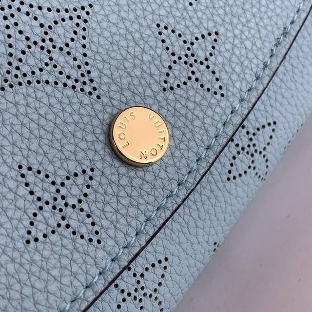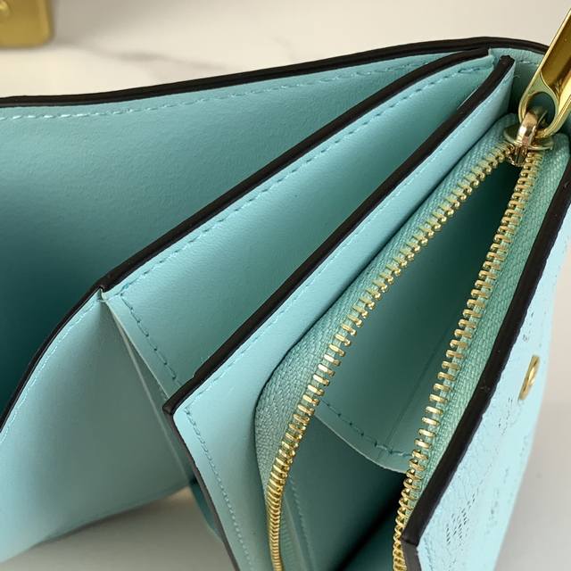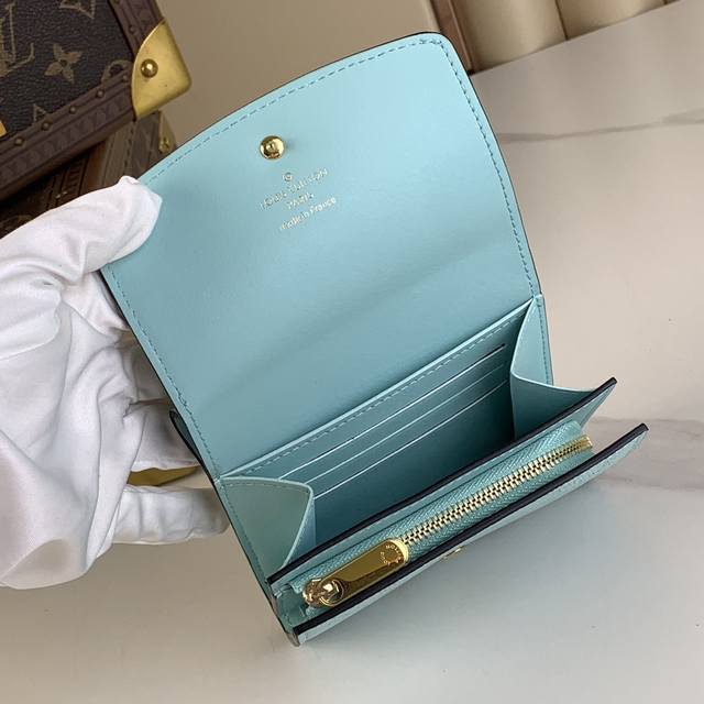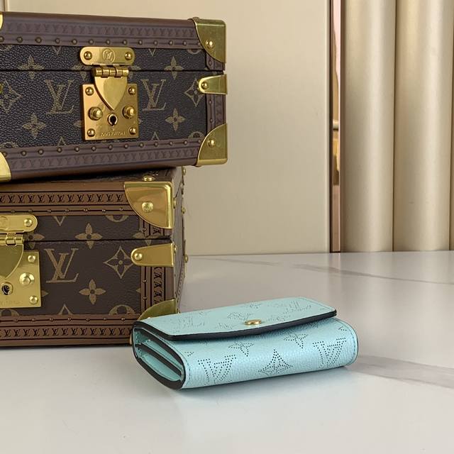 用马希纳小牛皮材质呈现的紧凑大小的维克托林华莱特。有效地构成空间,可以收纳卡、硬币、纸币的物品。刻有路易威登的金色冲压螺柱型锁定装置的恩贝洛夫风格的襟翼。纸币专用口袋,拉链型硬币钱包,带有六个卡槽的内部。