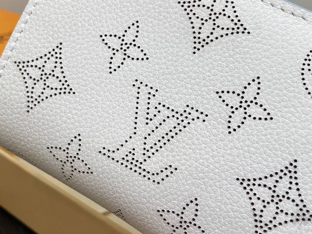 原单精品 M11749白色镂空 全皮两折钱包系列 Clea 钱夹 M80817 11749白色 镂空 用有柔软纹理的马希纳皮革更新的“钱包 克莱尔”。用对比色突出了字母图案的穿孔。简洁小巧的钱包,其特点是中央有拉链的零钱包。此外,还配备了通过卡扣打开和关闭的纸币和卡片的独立隔间。尺寸:11 X 8.5 X 3.5厘米。