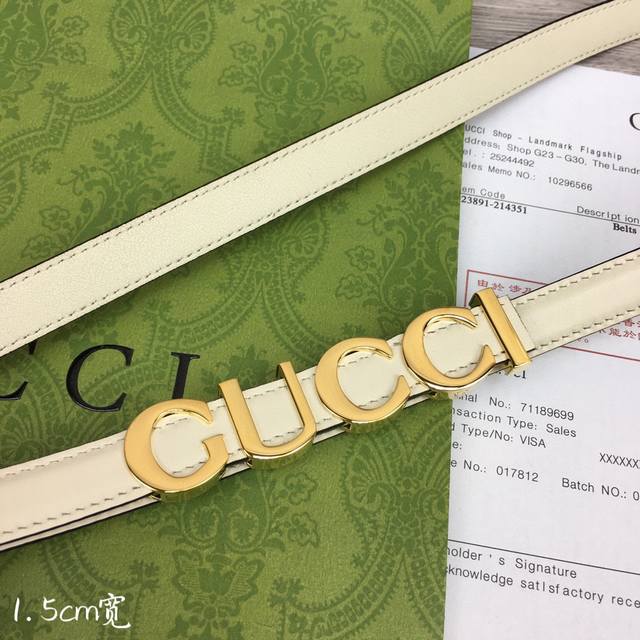 / Gucci 双面意大利进口头层小牛皮,搭配真空电镀亮面字母纯铜扣,经典款式,专柜有售,市场顶级品质,支持验货 配送全套专柜包装,宽度 1.5Cm