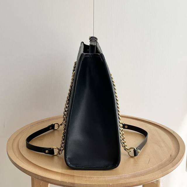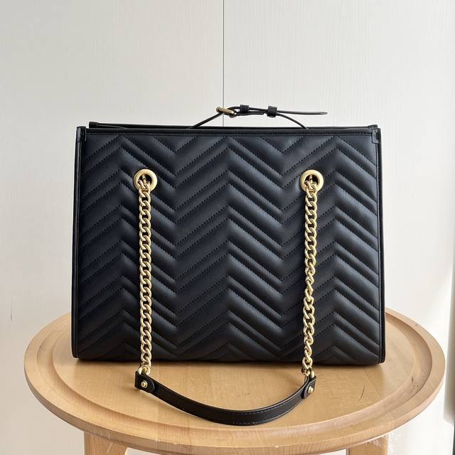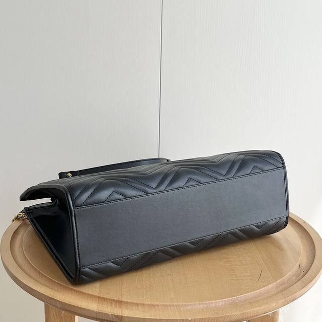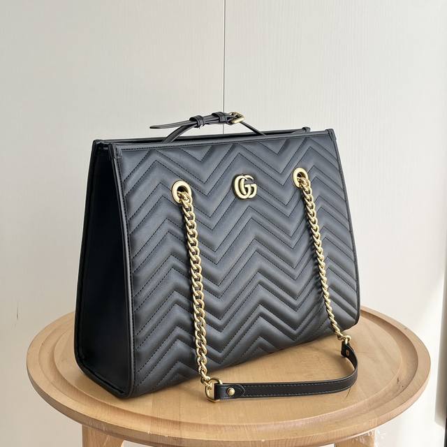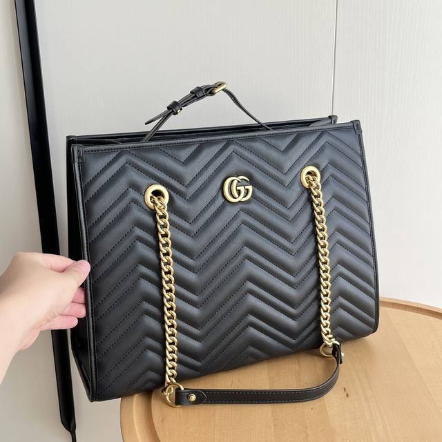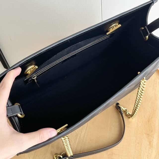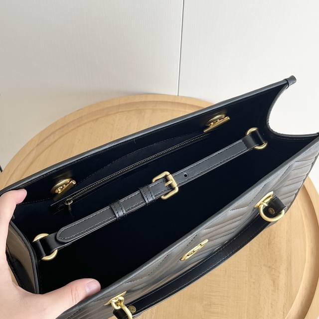 Gg Marmont系列在2024年春夏系列中继续大放异彩。这款托特包采用黑色绗缝皮革匠心制作,搭配隽永双g标识和金色调配件,魅力诠释品牌经典。黑色绗缝v型皮革