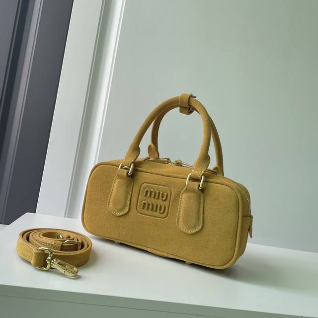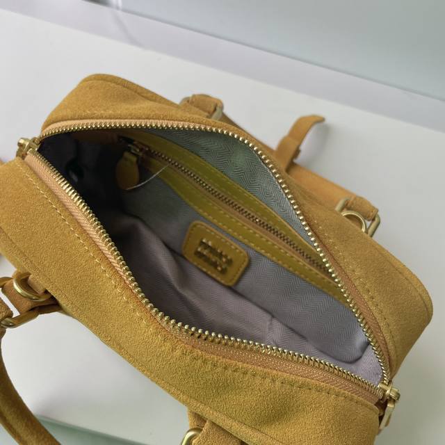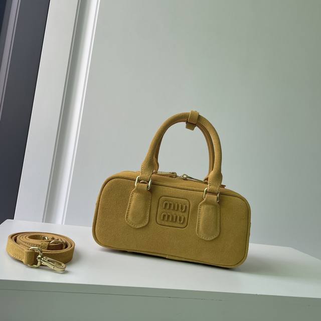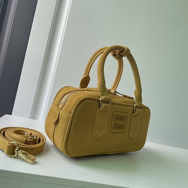 新款 ..Miumiu 5Bb142,Miu 家新款保龄球包包,火爆这个秋冬的麂绒皮元素,顶级头层麂绒小牛皮,包身精致立体有型,正面刻字徽标与皮革颜色相呼应,可