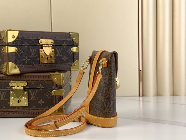 本款 Envelope Pouch 手袋为做旧效果 Monogram Dust 帆布和皮革饰边融入耀目金属件,成就日常出行佳选。柔软构型搭配可拆卸并调节的肩带,确保舒适背携之余再添利落风范。