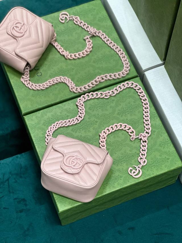 双g代表gucci长期以来对重塑和重新利用经典廓形作出的不懈努力。同色调双g配件 谱写摩登叙事,典藏元素在这款gg Marmont系列v型绗缝皮革腰包上以焕新之姿巧妙呈现。
