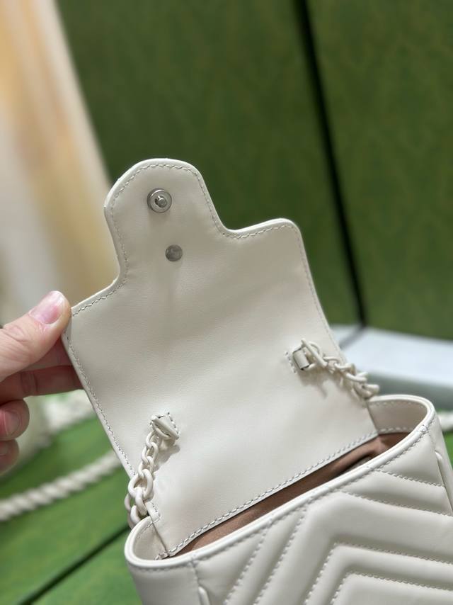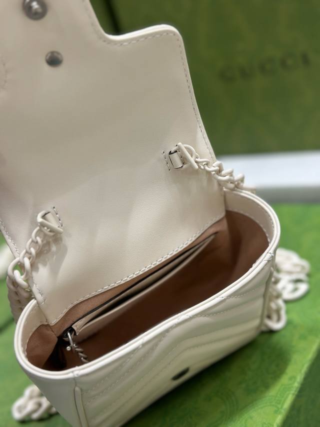 双g代表gucci长期以来对重塑和重新利用经典廓形作出的不懈努力。同色调双g配件 谱写摩登叙事,典藏元素在这款gg Marmont系列v型绗缝皮革腰包上以焕新之姿巧妙呈现。
