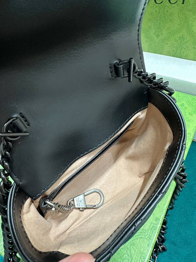 双g代表gucci长期以来对重塑和重新利用经典廓形作出的不懈努力。同色调双g配件 谱写摩登叙事,典藏元素在这款gg Marmont系列v型绗缝皮革腰包上以焕新之姿巧妙呈现。