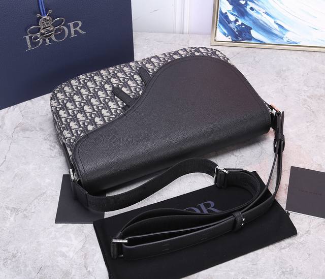 配盒子 这款马鞍信使包是一款实用而优雅的单品,采用品牌标志性的米色和黑色 Oblique 印花装饰,黑色粒面牛皮革提升格调。内部空间宽敞,提供充裕的收纳空间。翻盖开合设计,以“Dior”标志装饰,便于轻松取放物品。搭配舒适的可调节肩带,更加时尚百搭,是日常使用的理想良伴。