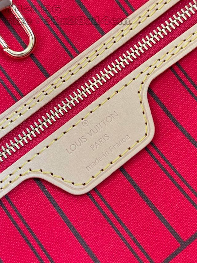 / 顶级原单 独家实拍 M12096大红 本款 双面可用 Neverfull 中号托特包为柔软 Monogram 帆布勾勒牛皮革饰边,于宽敞构型融入缤纷织物内衬。两