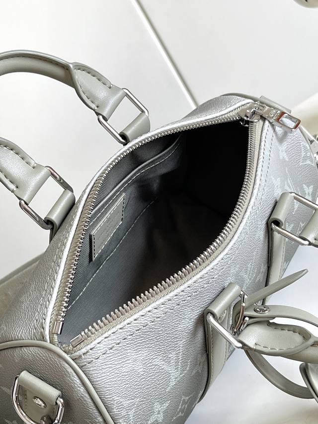 M11591 枕头包 本款 Keepall 25 手袋取材 Monogram Eclipse Reverse 帆布,展现路易威登经典图案的优雅重绎。加固饰带和皮革名牌延续 Keepall 系列的标志性元素,拉链开合令个人物品安全随行尺寸2 X 1 X 11.0Cm 长 X 高 X 宽