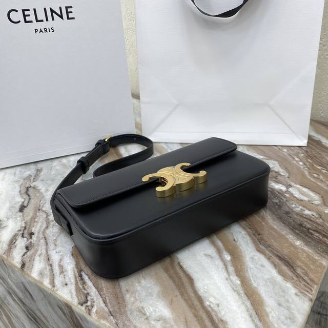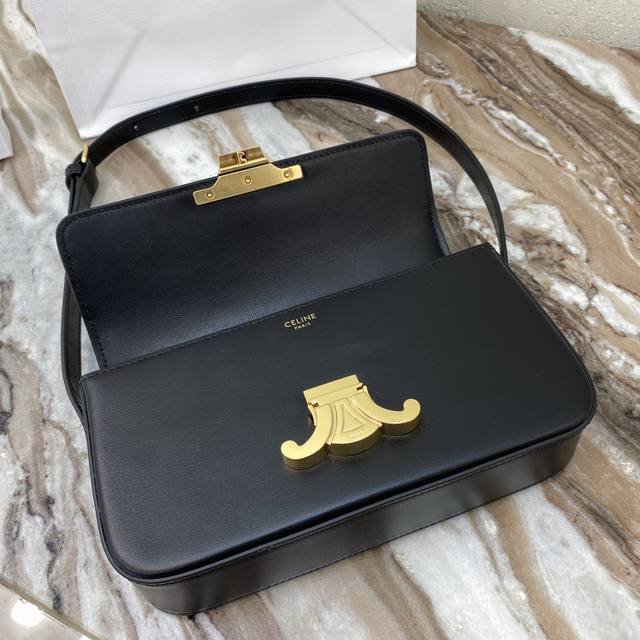 Triomphe亮面牛皮革腋下包 8 X 4 X 2英寸 20 X 10 X 4厘米 牛皮革 羊皮革衬里 肩背 Triomphe 金属质感锁扣 内侧扁平口袋 可