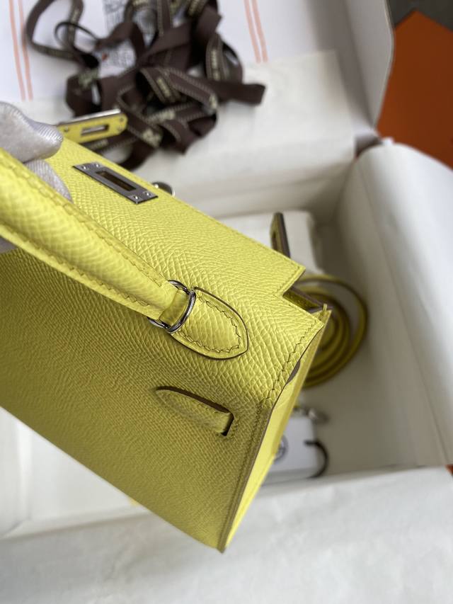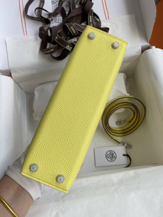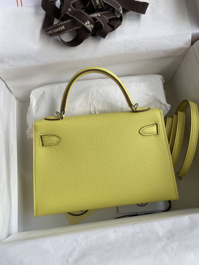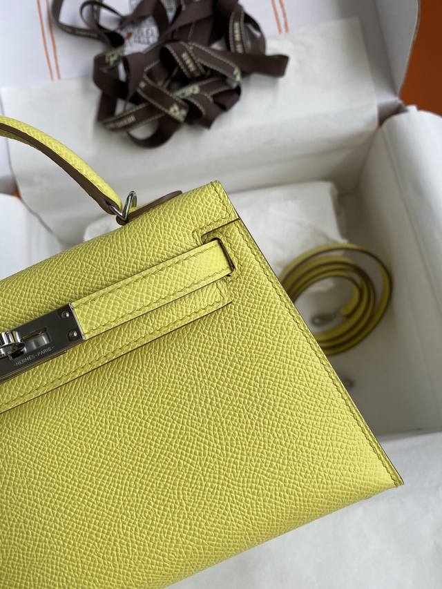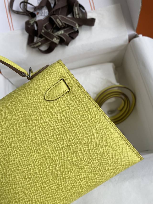 手缝二代mini Kelly 19Cm 进口epsom皮 柠檬黄 银扣