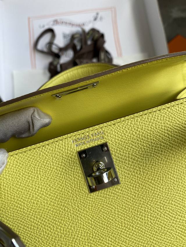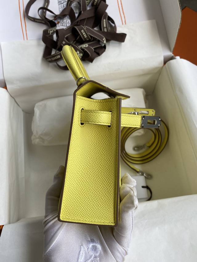 / 手缝二代mini Kelly 19Cm 进口epsom皮 柠檬黄 银扣