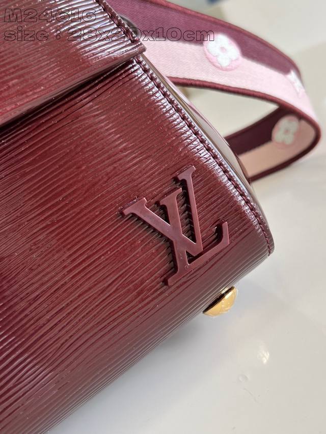 / 顶级原单 独家实拍 M24616酒红 Cluny Bb 手袋为 Epi 皮革勾勒新意斜纹,搭配光滑树脂 Lv 标识和明亮内衬。可拆卸双面肩带以缤纷提花释放当代气